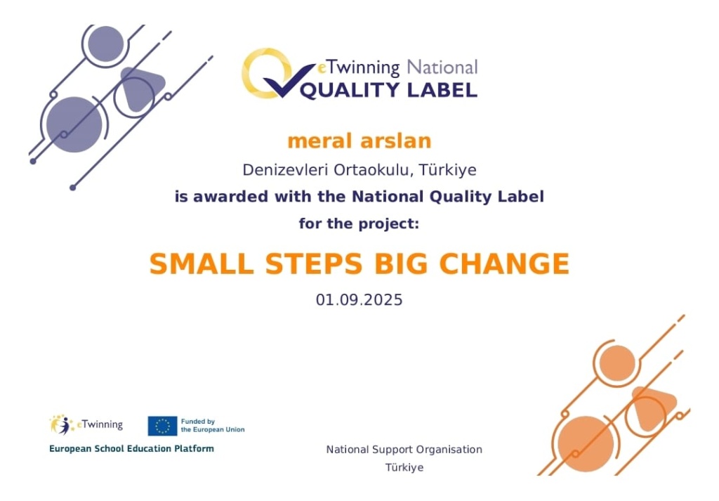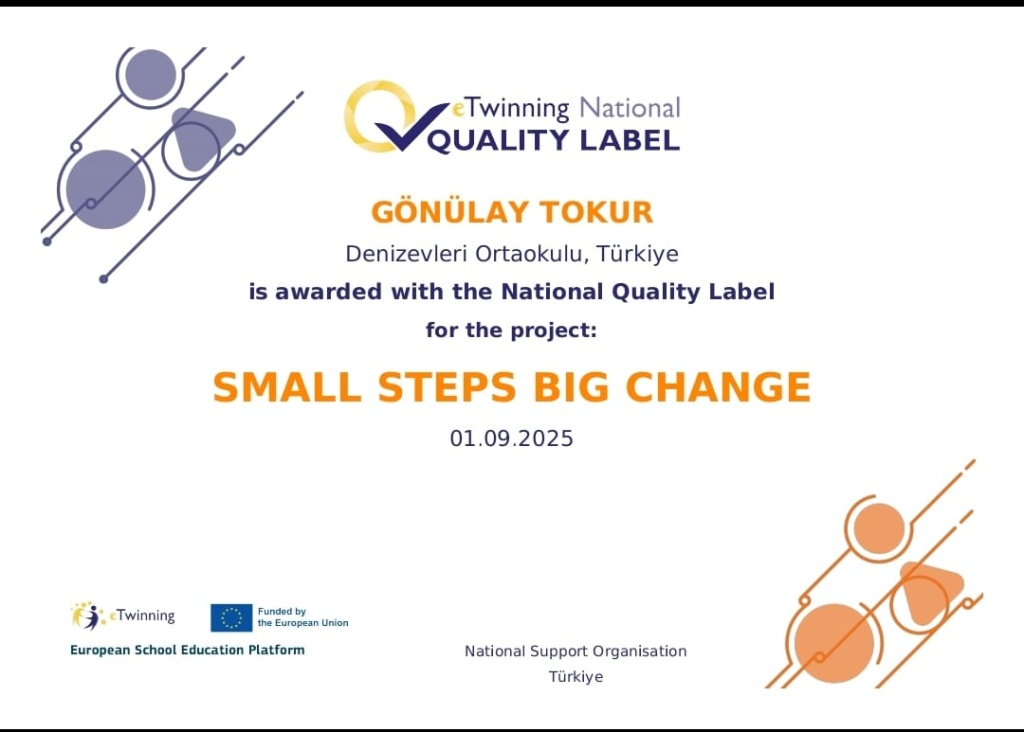 Okulumuz ana sınıfı öğretmenlerimizin Avrupa Komisyonu tarafından Avrupa ülkelerdeki okulları bir araya getirmek için oluşturulan ve dijital bir öğretmen topluluğu olan eTwinning programı üzerinden yapmış oldukları çalışmaları sonucu Ulusal Kalite Etiketi ile ödüllendirilmiştir. Emeği geçen öğretmen ve öğrencilerimize teşekkür ederiz.